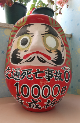 だるまさんに見守られながら、「交通死亡事故0」の達成日数を日々更新している信夫二小の子どもたち!