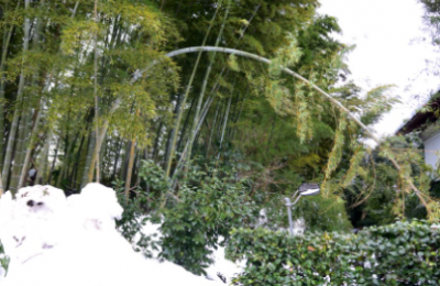 みなさんは、竹を見たことありますか?竹は背が高いわりには太さは細いです。竹は弱そうに見えるかもしれませんが、実はとても強いのです。地震の時は竹のたくさん生えている中に逃げこむと安全と言われています。竹は中々折れたりしないからです。また、竹は、重い雪がたくさん載ってもびくともしません。この写真の竹は雪が載って曲がっていますが、折れていません。竹は重い雪が上から載ってきても、折れないで、やわらかく曲がります。そして、雪が無くなったら「バネ」のように、また元のように戻ろうとします。竹がもしも「曲がらない堅い強さ」だけだったら、折れてしまうでしょう。このような「やわらかさ」「バネのような力」を「しなやかな強さ」といいます。