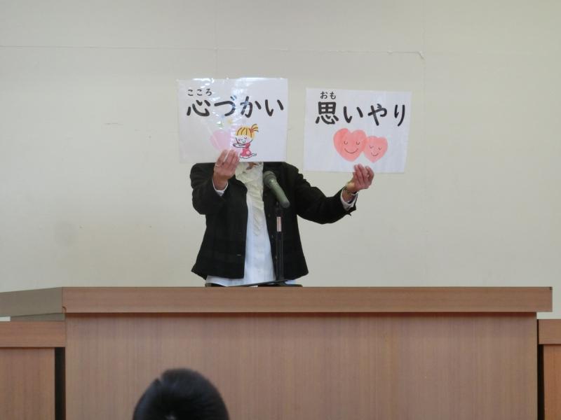 お二人とも、みんなの交通安全だけでなく、元気で明るくなど心や体の健康まで気にしてくれていることが分かりますね。それも、毎日。みんなが学校に来るときはいつも。お二人がみんなのためにしてくれていること。これは当たり前の事だと思いますか。当たり前のことと思う人は一人もいないと思います。だとしたら、みなさんはどうすればいいのでしょうか?自分たちの事を支えてくれている地域の方に、わたしたちは何ができますか。