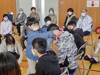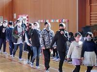 全校集会が開かれ、地震の時に命を守ること、余力があれば