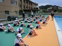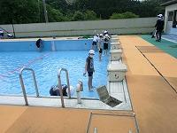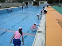 2年生以上の児童でプール清掃を行いました。