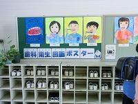 校庭出口前の 廊下に掲示されました。
