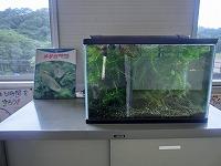 廊下に設置されためだかコーナー