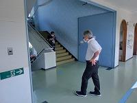 不審者に気づかれないように避難します