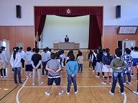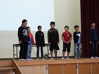 全校集会が開かれました。白河市の健全育成標語コンクールの