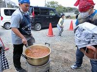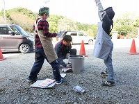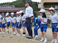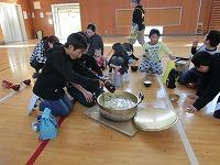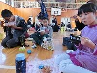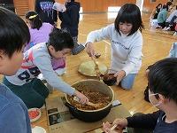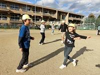 つくった料理を全員で食べた後、校庭に出てみんなで
