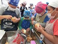 学校で栽培したジャガイモを使って、調理を行い、