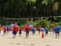 全校児童46名 全員参加し、聖火リレーから行われました。