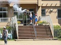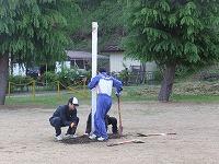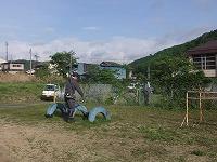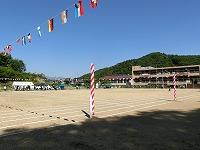 25日(土)の運動会に向けた校庭の整地や入退場門の設置などや、