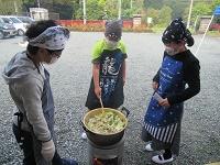班のみんなで力を合わせて作った料理を、体育館でみんなで車座になり、おいしくいただきました。自分たちの班の料理だけでなく、他の班のものもごちそうになり、みんなで楽しく食べ、絆を一層深めることができました。本校ならではの、思い出深い楽しい行事となりました。保護者の皆様、持ち物などの準備、ご協力ありがとうございました。