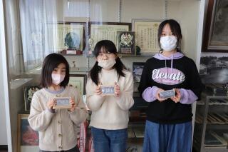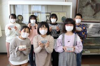 今回、橋名板の文字に選ばれた児童に記念品として、土橋の橋名板のレプリカをいただき、