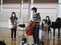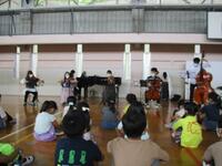 今回は、1~3年生が対象で、ヴァイオリンなどの弦楽器による演奏をたくさん披露していただきました。聞き覚えのある曲もたくさん演奏してくださり、子どもたちも身体を動かしながら楽しそうに聞き入っていました。