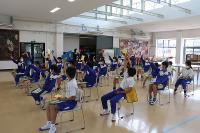 担当の先生から出場種目と名前を呼ばれ、選手のみんなは元気に返事をして大会に向けての意気込みを全校生に伝えました。そして、全校生の代表として応援委員会の委員長が激励の言葉を選手に向けて話しました。