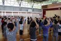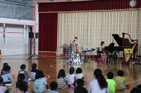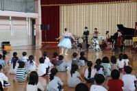 長谷川ファミリーの皆さんは、平成26年度にみんゆう県民大賞芸術文化賞を受賞、全国の学校を回り、演奏会数は1000回を超える実績を持つ方々です。そんな本格的な演奏を間近で聴き、子どもたちも音楽の世界に引き込まれていました。また、演奏の合間に、バレエの簡単な振り付けを教えてもらい、みんなで楽しく踊りました。