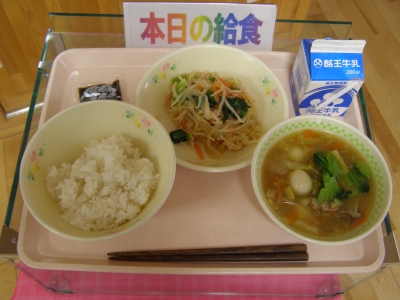 麦ごはん ひじきの佃煮 八宝菜 春雨サラダ 牛乳