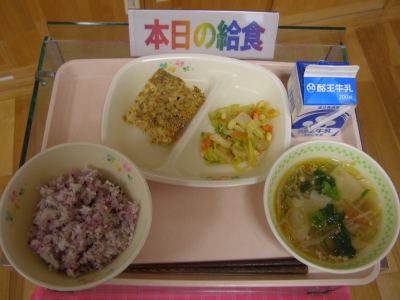 今日の給食 2014年2月12日 14時24分 今日の出来事 今日の給食は、ゆかりごはん 松風焼き 白菜サラダ ワンタンスープ 牛乳松風焼きは、肉厚でボリュームもありましが、よく食べていました。他の料理も残さずよく食べていました。