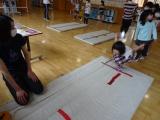 50m走やソフトボール投げ、反復横跳び・・・校庭や体育館で子どもたちや先生方の応援の声が飛び交っています。3密を避けるために、オープンスペースにマットを持ってきて、そこで立ち幅跳びの練習や計測を行っている学年もあります。教室から近い場所なので、休み時間には、積極的に練習する二小っ子もいます。