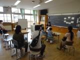 白河二小では、以前から担任の先生と外国語指導教師による授業が積極的に行われていましたが、今年度からは、ふくしま外国語教育推進リーダーである荒井智先生が週に2回来てくださり、6年生の外国語の授業を担当してくださっています。荒井先生は、元白河二小の教員です。荒井先生が来てくださることで、新しく始まった外国語の授業の指導法を教員同士で学んだり、担任の先生の負担を軽減したりすることができています。