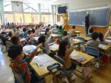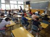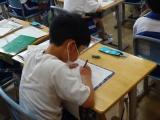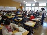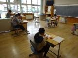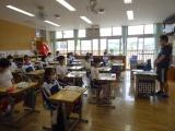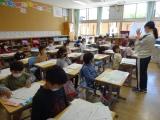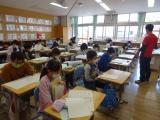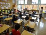 各教室では、休校中に子どもたちが行った課題を集めたり、新しい課題が配られたりしました。新しい課題について確認する際には、漢字の書き順をみんなで確かめたり、リコーダーで練習する曲をCDで聞いたりしました。友達同士で、また子どもと担任が話す姿がとても印象的で、マスク越しでもそのうれしさは伝わってきました。
