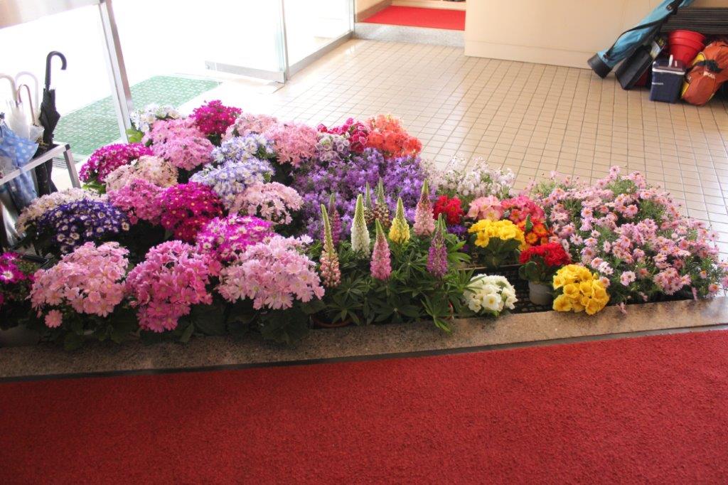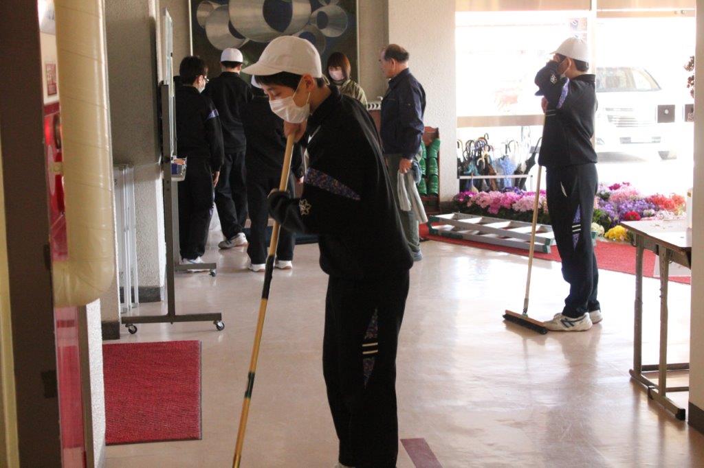 式場装飾の生花が届きました 校長室、一階の廊下も掃除しました。