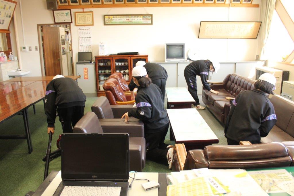 明日13日は、卒業式です。3年生の門出を祝うために、式場や校舎、駐車場となる校庭の整備を