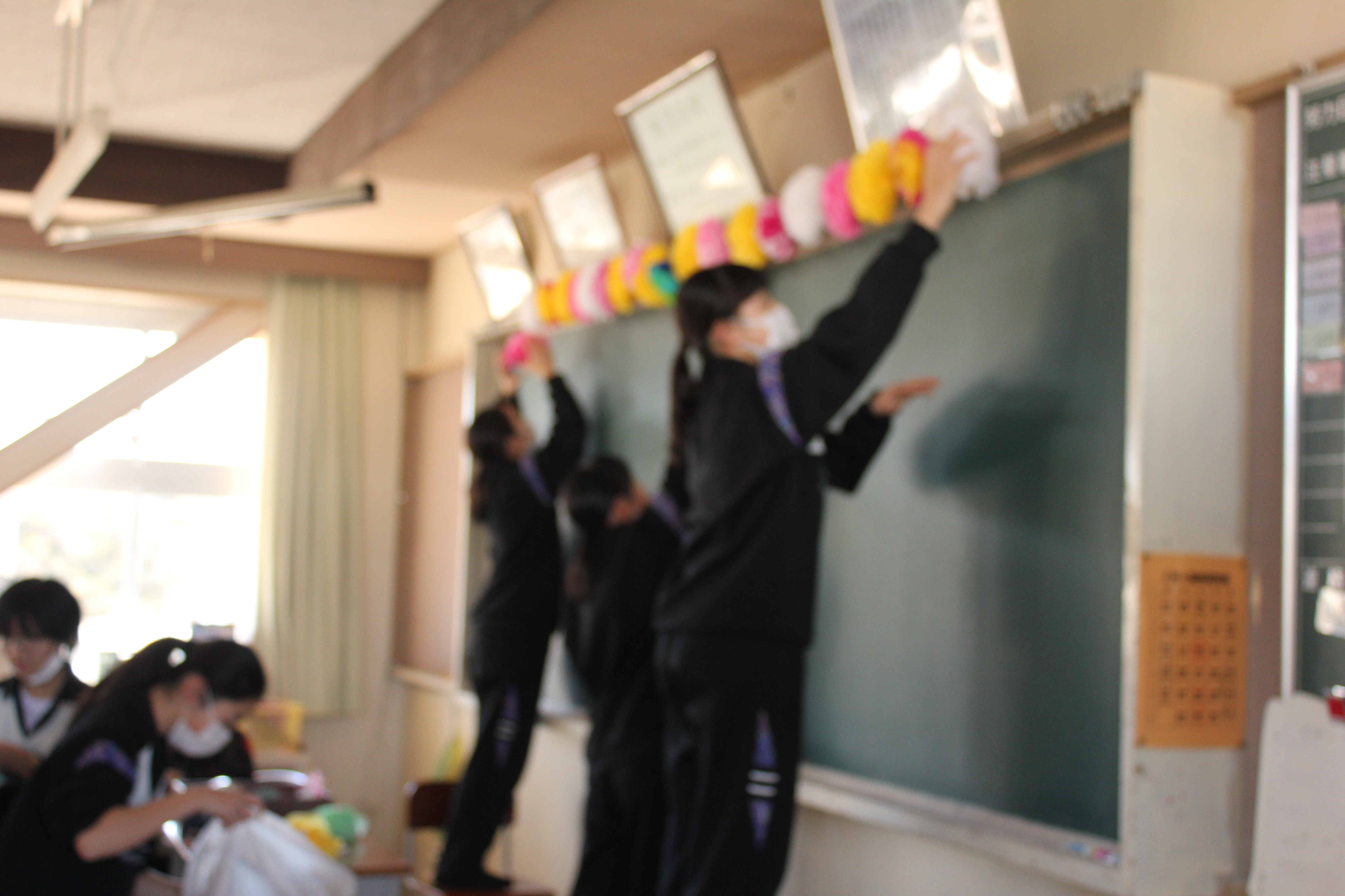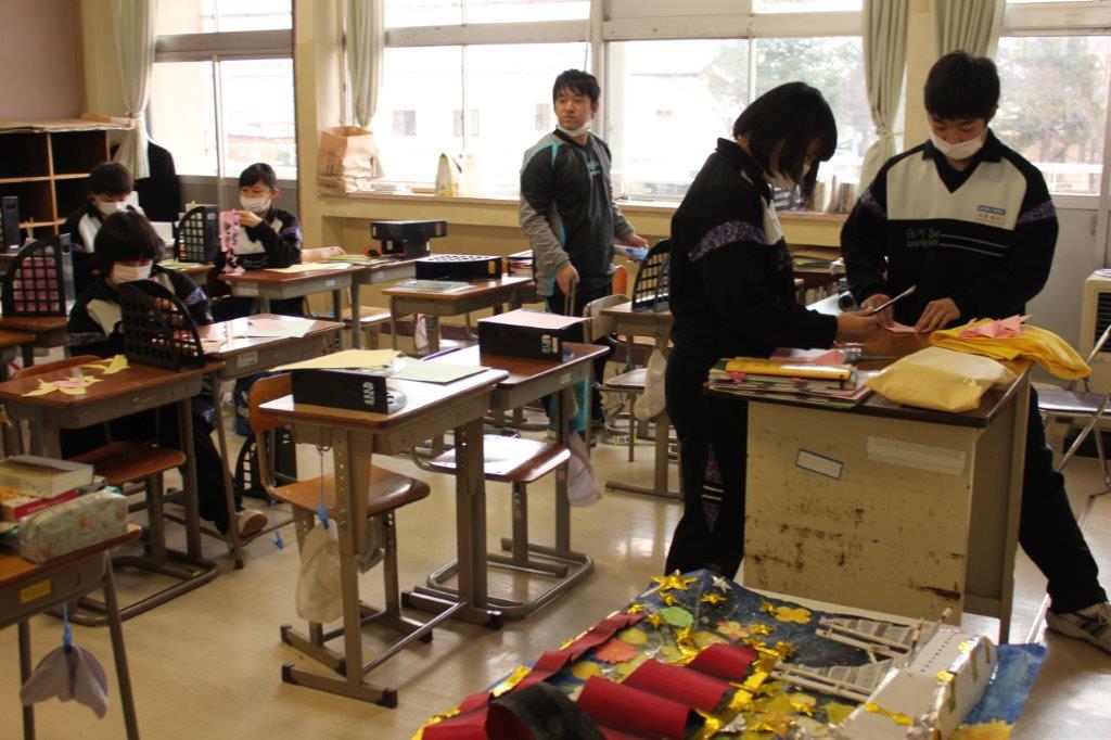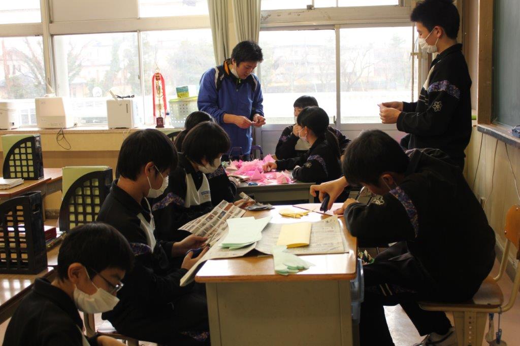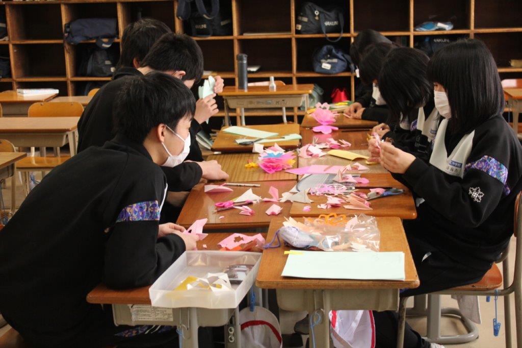 3年教室ならびにフロアーの掃除、卒業式に向けた飾り物の制作を行いました。