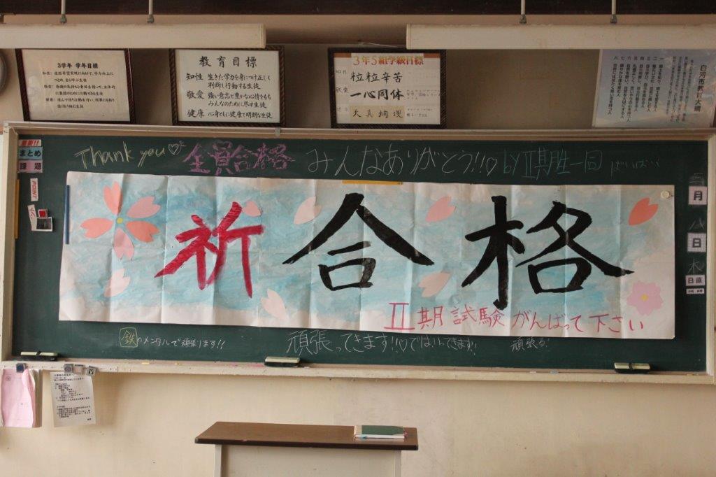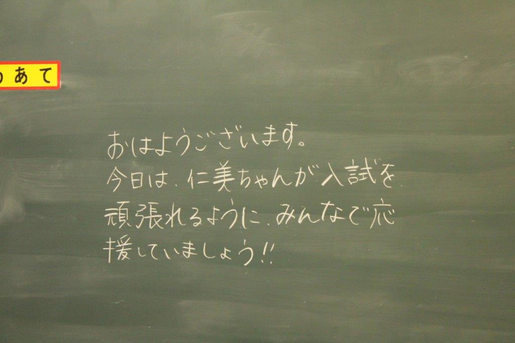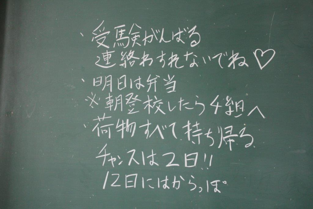 3年の各学級では、生徒のがんばりを願うメッセージが黒板に書かれたり、掲示されたり
