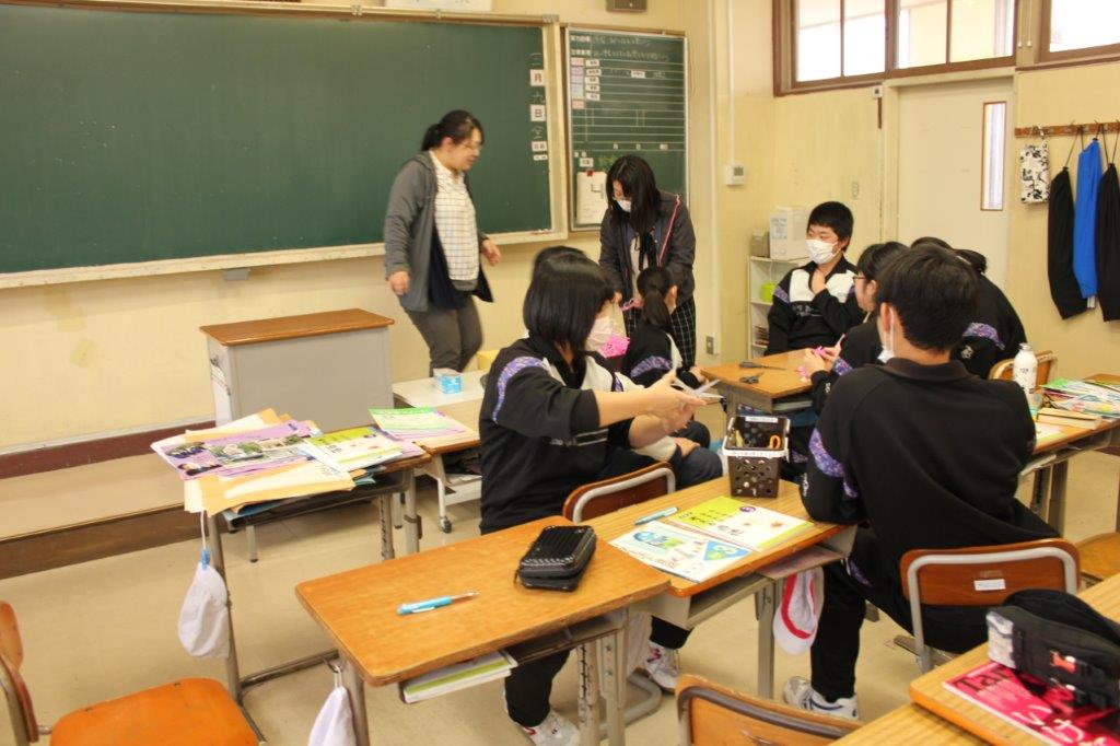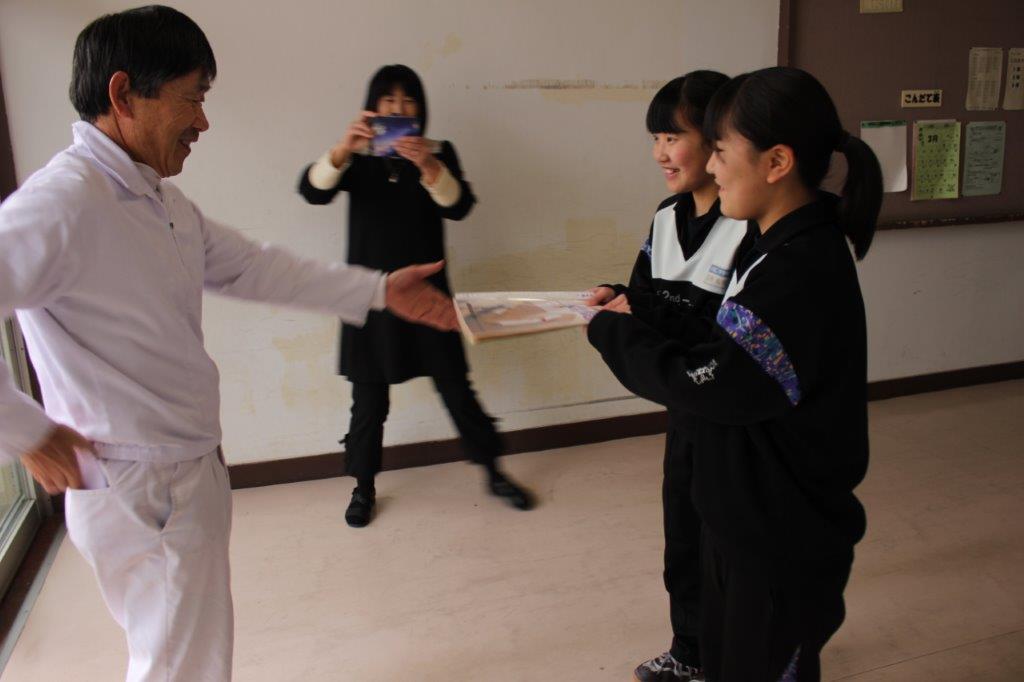 お礼状をお送りしました。給食委員会の岩井委員長と三村副委員長がセンターの方に手渡しました。