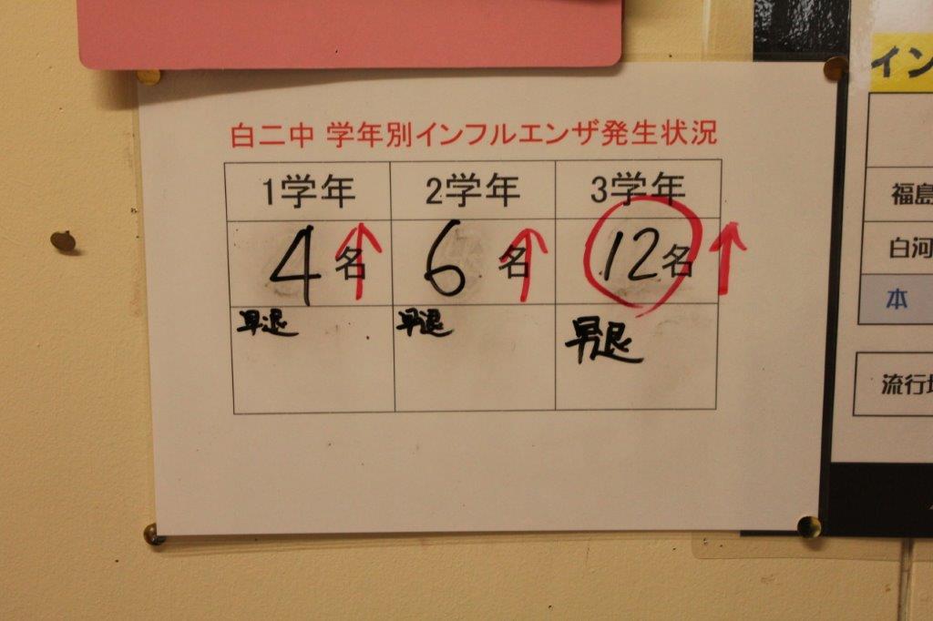 1・2年生はまだ罹患者がいますが、先週のような数にはならないと思います。