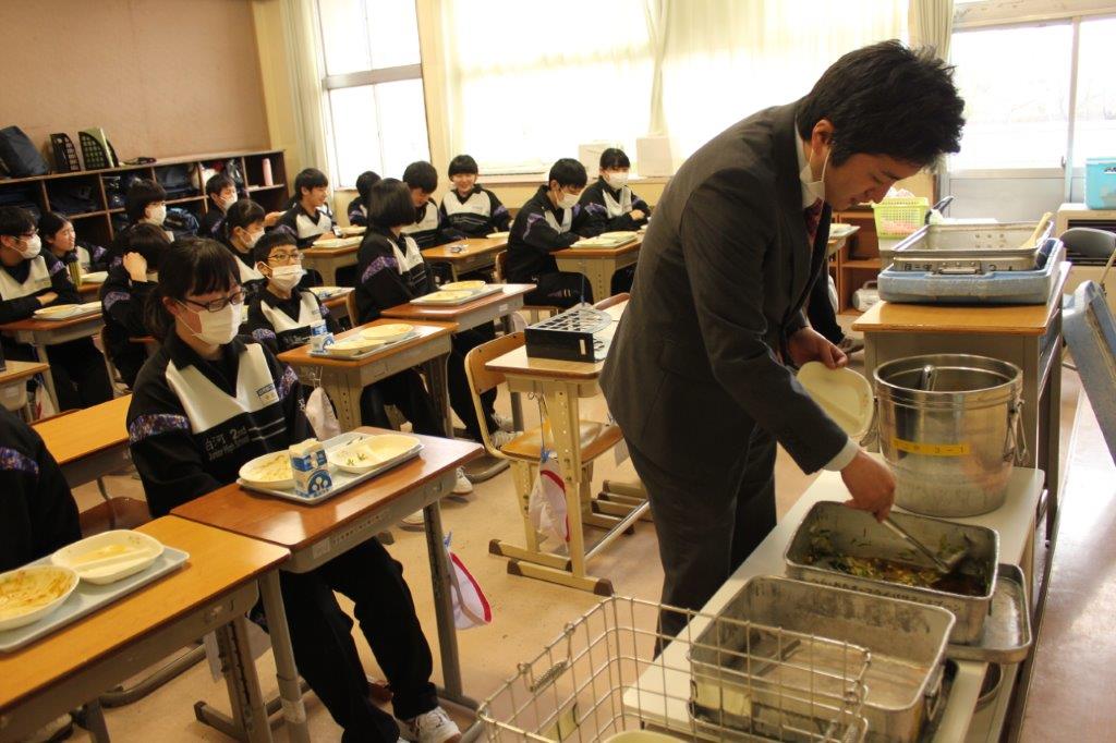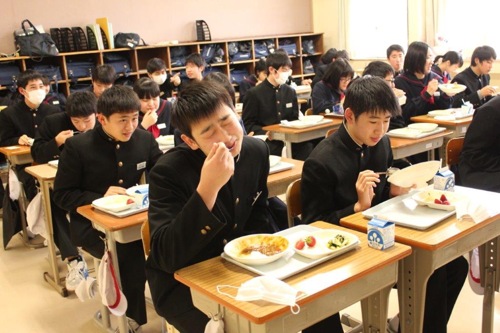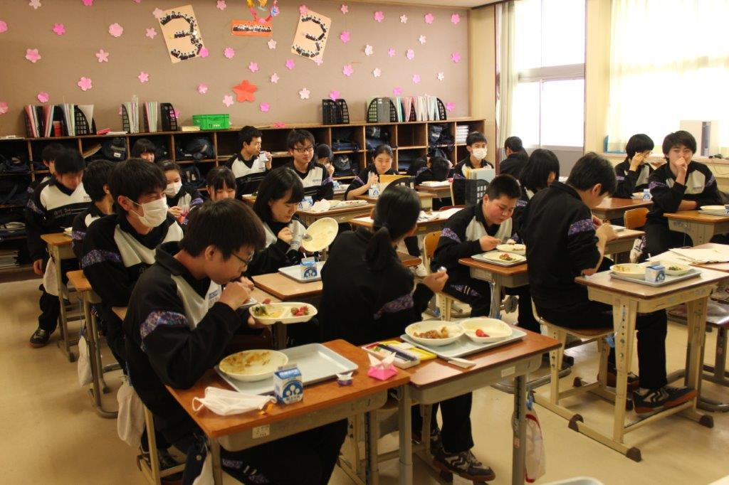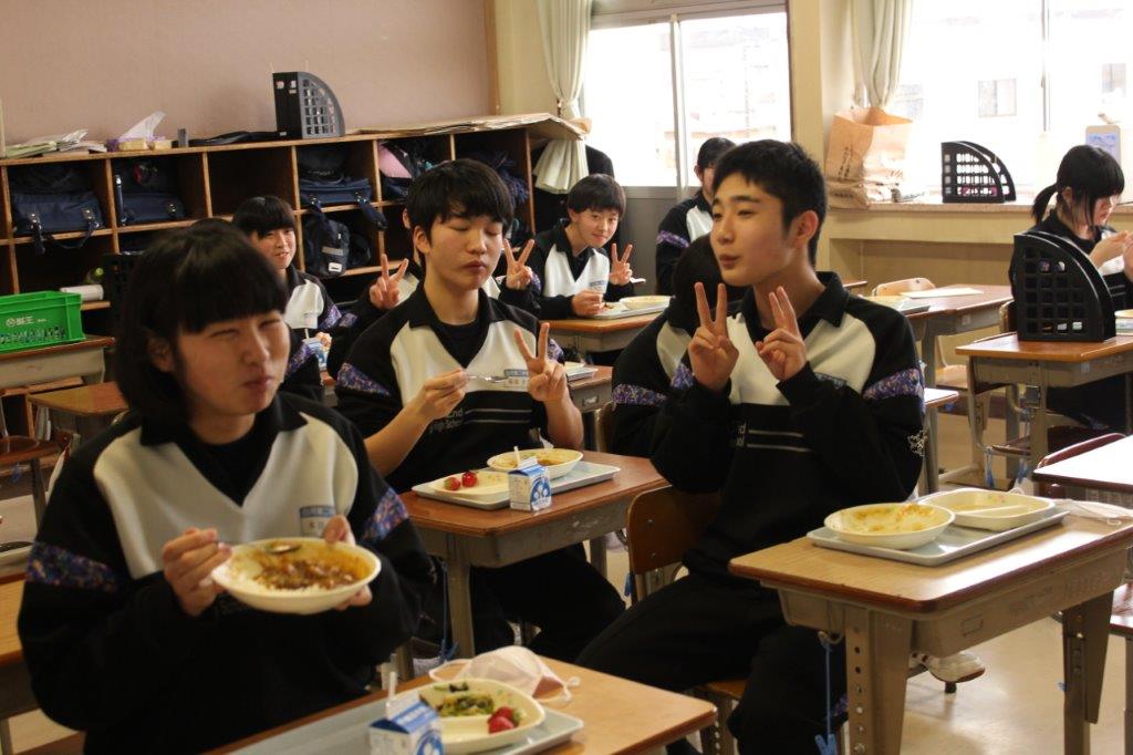 本日は、3年生にとって中学校最後の給食カレーでした。