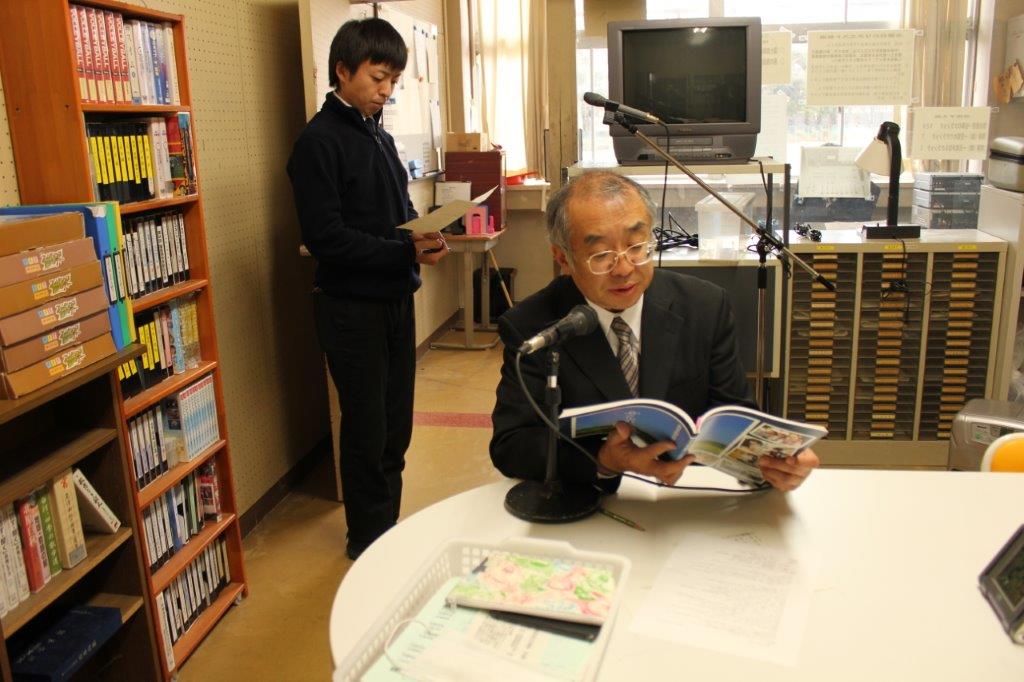 当初は全校集会の予定でしたが、インフルエンザ予防のために、放送により行いました。