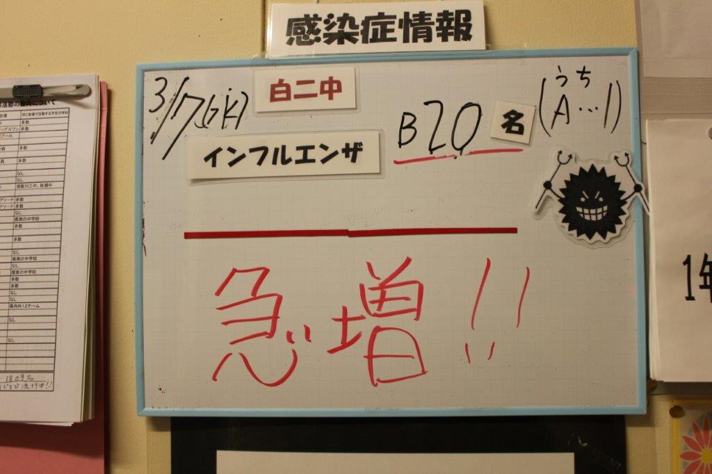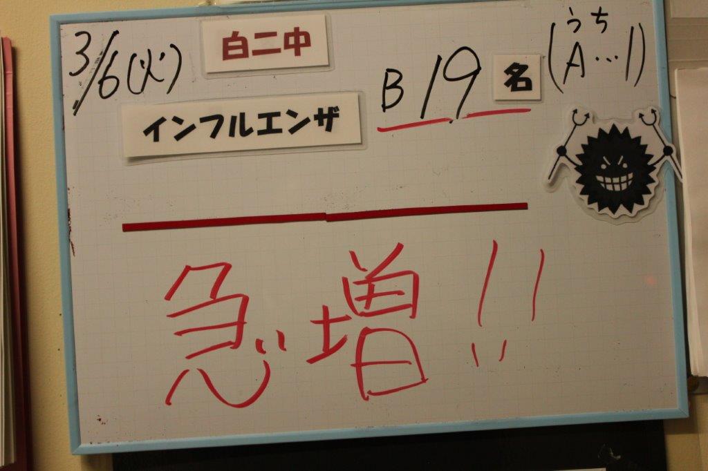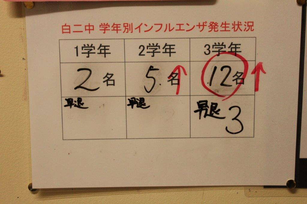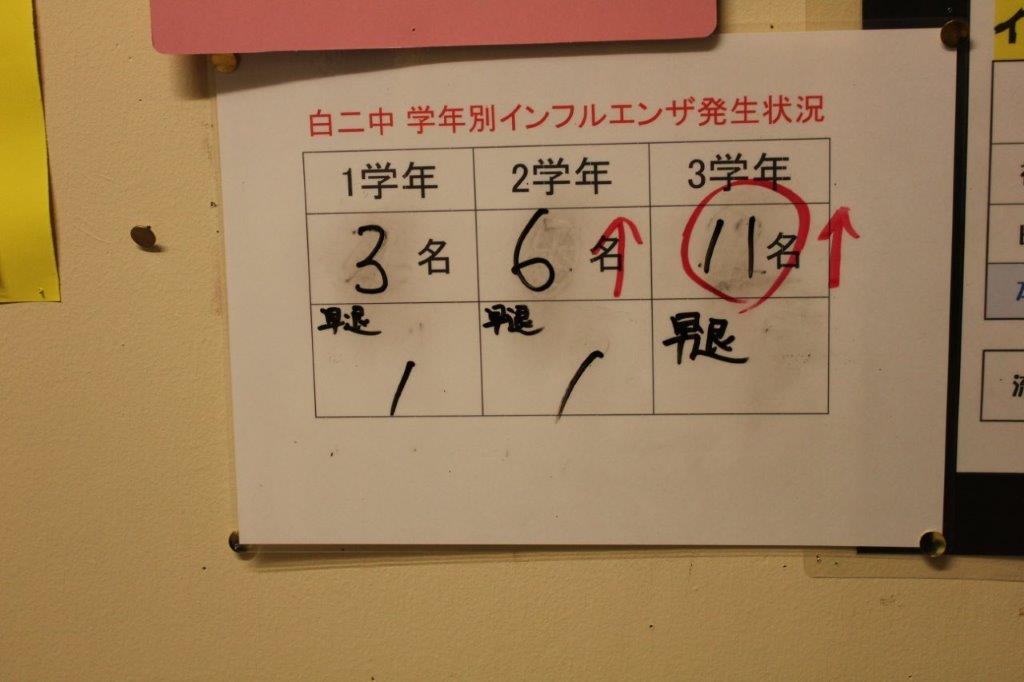 3年生が増えています。明日はⅡ期選抜の試験ですが、インフルエンザ罹患者は