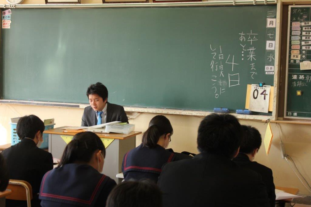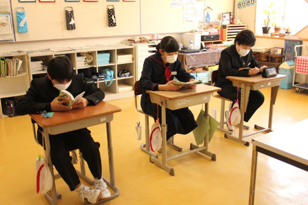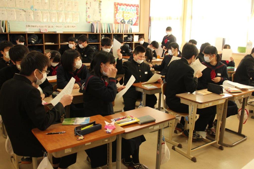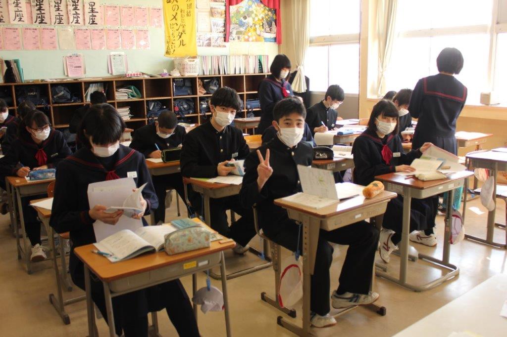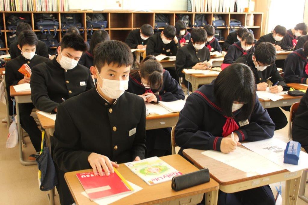 3年生を朝の様子です。明日に向けて、担任からの指導や学習に励む姿が見られました。