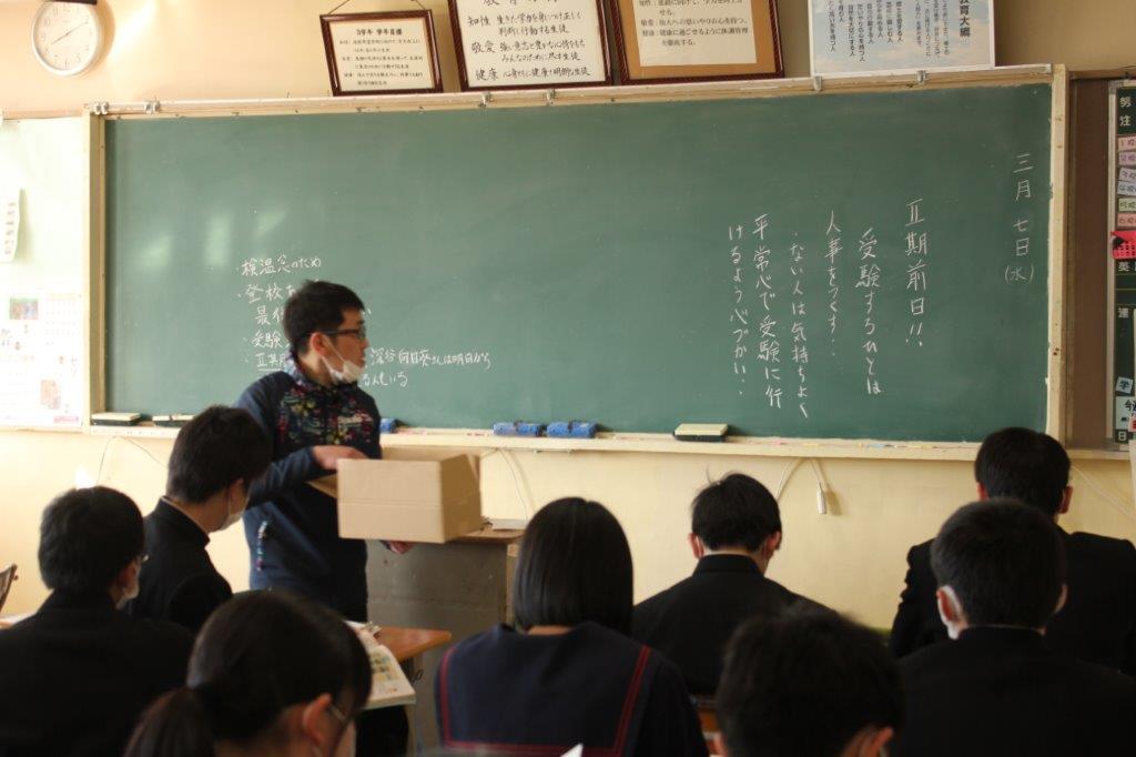 各高校への受け渡しと激励をします。これまで努力したことは無駄にはなりません。体調が優れなくとも