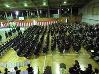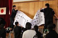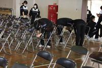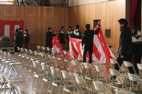 明日の卒業式に向けて、午後から在校生が会場準備や掃除、装飾を行いました。グループ毎に担当箇所の仕事を適切にこなしました。体育館には生徒、来賓、職員、保護者の椅子をびっしりとならべ、明日を迎える準備を整えました。