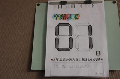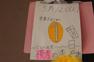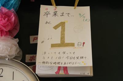 いよいよ巣立ちの時です。3年生教室には卒業までの日数を数えるカレンダーがああります。制作者の卒業に向けた思いが感じられます。