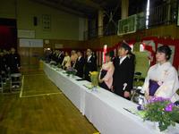 祝電の掲示 紅白幕・式次第は協力して掲示しました
