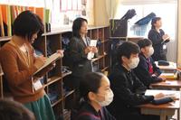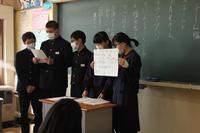 20日、2の1の家庭科減塩プロジェクトの発表を行いました。前回同様に、市から栄養士と保健師に来たいただき、乾燥と助言をいただきました。県南教育事務所からも参観に来ていただきました。生徒はやや緊張の面持ちでしたが、自分たちの調べたことにを自身を持って発表していました。