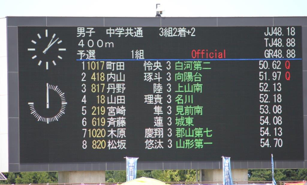 森さんの表彰 4コーナーの町田さん 町田さんお予選の記録