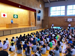 2017年8月25日 19時15分長い夏休みが終わり、いよいよ第2学期がスタートしました。始業式での代表児童による抱負発表では、充実した夏休みだったことや2学期への期待が伝わってきました。