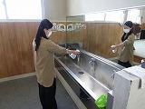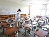 学校では、本日、子どもたちが安心して登校できるように、子どもたちが使っている机やよく触る水道の蛇口や階段の手すりなどの消毒作業を行いました。また、図書の貸し出しがスムーズにできるように、図書室の整備も行いました。久しぶりに子どもたちに会えるのを全職員楽しみにしています。