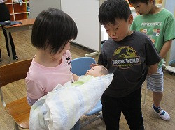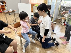 助産師の先生をお招きし、発達段階に合わせて学習しました。