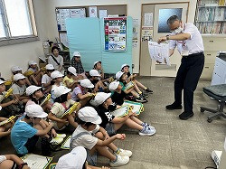 図書館の司書の方にお話を聞いた後、自分たちで読みたい本を探し、自分で貸し出しの手続きを行いました。待っている間は、読み聞かせをしていただき楽しい時間を過ごしました。子どもたちが考えた質問にも答えていただき、図書館のひみつをたくさん知ることができました。まだまだ、図書館のことを知りたい子どもたちが多いようです。
