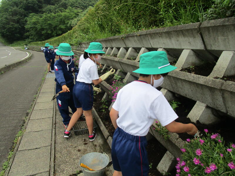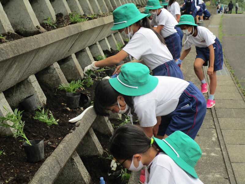 2021年6月17日 11時39分16日(水)に緑の少年団(5,6年生)の2回目の活動を行いました。今回は先週、球根掘りをした道路際の花壇に、マリゴールドとサルビアの苗を植えました。700株以上あった苗を手際よく植えることができました。ぐんぐん成長してきれいな花を咲かせてほしいと思います。