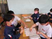 2年生では、学校司書の先生が、2年生向けに図書館の活用の仕方と読み聞かせを行ってくださいました。