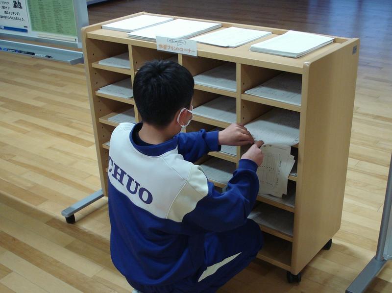 また、1学年の廊下にはスペコンの練習用紙と一緒に、平成29年度の実力テストの過去問が置いてあります。先週の終わりから今日にかけて、休み時間や放課後の時間に過去問を持っていく姿が多く見られるようになりました。