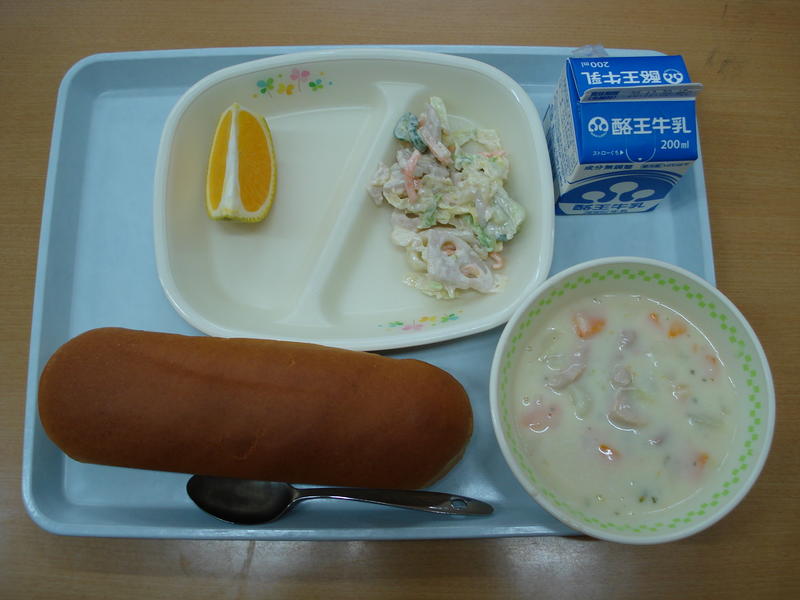 黒糖パン 牛乳 レンコンサラダ クリームシチュー スイートスプリング