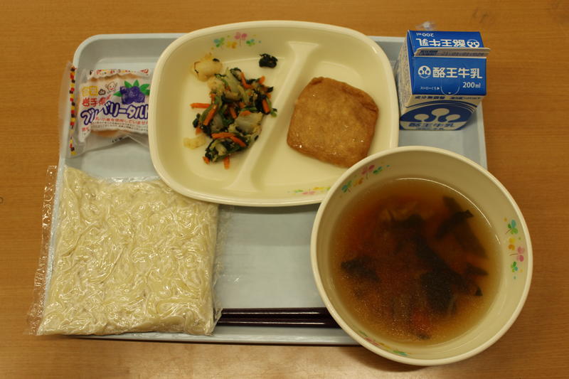 力もちうどん 牛乳 白菜のおかかあえ ブルーベリータルト