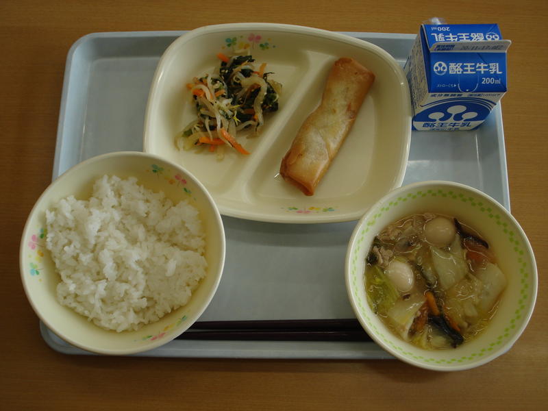 ごはん 牛乳 春巻き ナムル 八宝菜