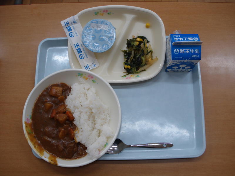今日のカレーライスに入っていた牛肉は福島牛だそうです。大人気メニューのため、みんなおいしそうに食べていました!